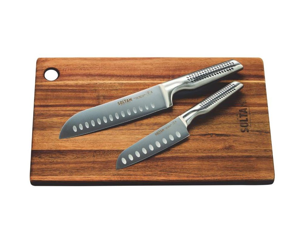 מכיל: סכין סנטוקו 5" סכין סנטוקו 7" קרש חיתוך 38*23*1.9