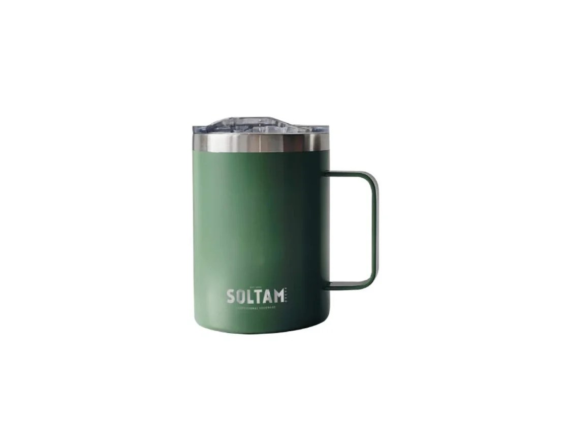 ספל תרמי עשוי מנירוסטה, עם ידית ומכסה מכיל: 480 מ"ל בעל דופן כפולה, אטום לנזילות BPA FREE לשמירה על חום/קור למשך שעות