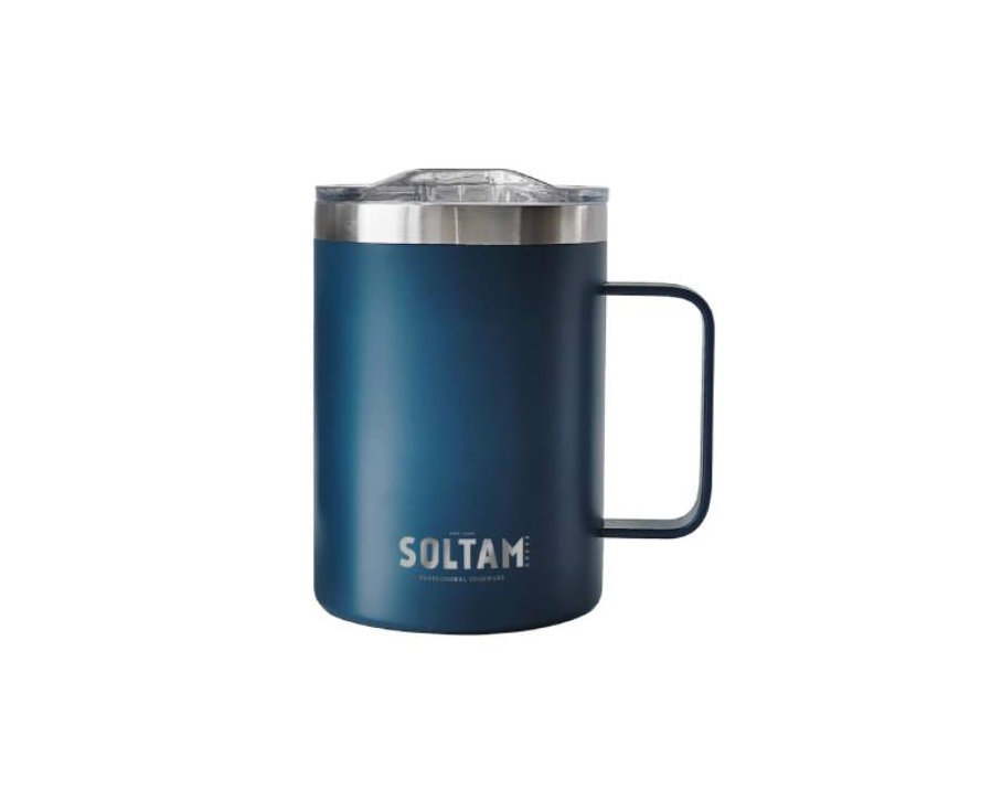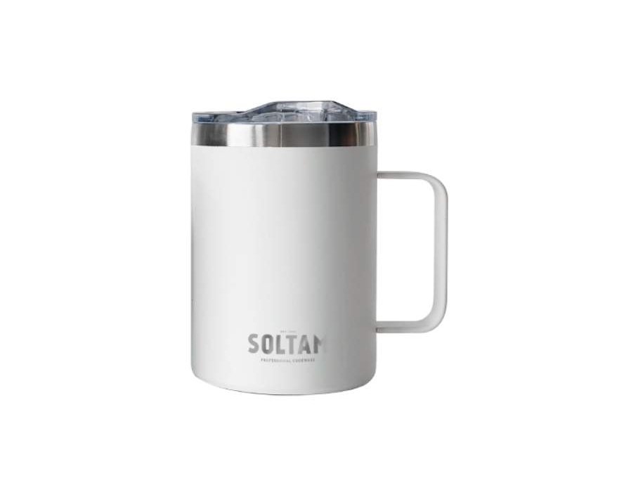 ספל תרמי עשוי מנירוסטה, עם ידית ומכסה